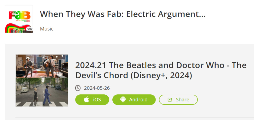 On May 26, 2024, I was a guest on the podcast When They Was FAB, discussing the connections between the Beatles and Doctor Who, which intersect in some interesting ways: